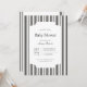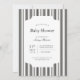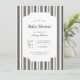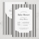 Classic, timeless black and white vertical stripe baby show invitation. Customizable font styles and layout, featuring a simple patterned backdrop with a clean, geometric stripe pattern. Perfect for unisex baby shower invites, baby boy shower invites, and retro baby shower invites.