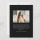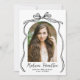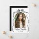 Celebrate your graduate’s achievement with this elegant graduation announcement, featuring a photo displayed in an arch-shaped frame, beautifully accented by a hand-drawn black bow and ribbon on a white background. The graduate’s name is showcased in a stylish handwritten black script, with their school and graduation year displayed below. The back of the announcement features a horizontal photo with space for a custom message, perfect for sharing gratitude or future plans. This timeless and sophisticated design is a meaningful way to honour your high school or college graduate’s success!