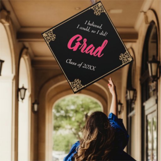 Vintage black with gold baroque frame. Pink and white typography. Customise and personalise with the party details. Cheers to the Graduate!!.