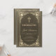 This elegant confirmation invitation with a vintage air has a vintage golden frame with elegant baroque gold decorations on a black leather-like background. The name of the boy is written in an elegant calligraphic script. All text can be personalised and has a golden colour similar to the gold decorations of the frame.