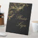 For your wedding this elegant pedestal sign features a vintage gold floral damask flourish on black with faux gold script calligraphy that reads "Please Sign". Congrats on your wedding!