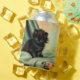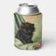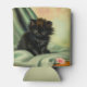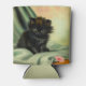 Can Cooler featuring a loveable black kitten! The green eyed kitten sits on a blanket with a pink flower. A beautiful gift for cat lovers and Victorian art enthusiasts!