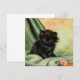 Card featuring a loveable black kitten! The green eyed kitten sits on a blanket with a pink flower. A beautiful gift for cat lovers and Victorian art enthusiasts!