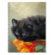 Notebook featuring a loveable black kitten! This cosy kitten adorably sits on a red blanket of yellow flowers. A great gift for cat lovers and Victorian art enthusiasts!
