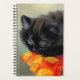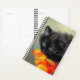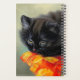 Planner featuring a loveable black kitten! This cosy kitten adorably sits on a red blanket of yellow flowers. A great gift for cat lovers and Victorian art enthusiasts!