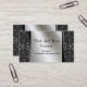 Elegant Black Lace Professional Business Cards On Silver Background. Unique business cards with a retro vintage antique black lace roses fabric look both on the front and on the back of the card ready for you to add your custom information. Black, beautiful script text on the front and on the back can easily be changed. Perfect for the interior decorator, wedding and bridal dress business, event planner, vintage store, and clothing, sewing, fabric textile business also.