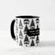 A vintage black and white illustration of a Christmas tree with all the trimmings. Ideal for Christmas gifts and decor. Customise the Christmas mug with your text and make it your own.
