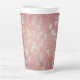 This Abstract graphic, is designed with floral petals, highlighted in white, and gilded, gold leaves, against a pink, and fuschia, background-patterned in vintage setting.