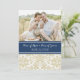 Vintage Blue Beige Damask Photo Elopement Cards