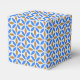 Put your gift in this favour box with this beautiful Barcelona petals star pattern in blue and brown. The background is light beige.