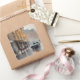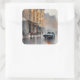 Vintage Blue Car in Foggy Cityscape Square Sticker