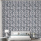 Vintage Blue Chintz And Pinstriped Pattern Wallpaper