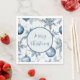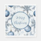 The vintage blue Christmas tree ornaments pattern on these napkins is perfect for a holiday party. Text can be changed. There are matching paper plates available. AI assisted graphic purchased with commercial use. Artwork: DreamCafeArt