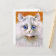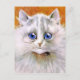 This gorgeous cat postcard features the work of famous English cat artist Louis Wain. Called "Young Coquette," the design on the card is a classic vintage painting of a long haired white female cat with beautiful, luminous blue eyes. She looks very vulnerable, the opposite of a coquette. The card would be perfect for cat owners, cat lovers and admirers of vintage cat art.