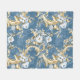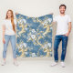 A Blue, Gold And White Floral Vintage Pattern Fleece Throw Blanket