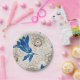 A beautiful antique blue printed floral pattern with additional stippled flowers on paper plate. Look for other products with this pattern available from Farmhouse Living.