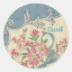 Show your love of vintage with these old-fashioned handkerchief stickers. Blue border and pink flowers add charm and quaint sweetness. Personalise with your name. Make great gifts.