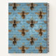 Big brown honey bees with gold crowns are in front of a beautiful vintage blue background with writing.