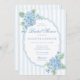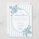 Vintage Blue Hydrangea Flower Stripe Bridal Shower Invitation