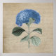 Vintage blue hydrangea flower on an antique paper-look background with faded calligraphy lettering. Hydrangeas are a popular floral choice for weddings, gardens, floral arrangements, decorative dried wreaths and florists everywhere. Vintage Botanical print design for your home.