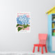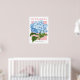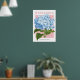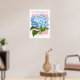 Vintage blue hydrangea illustration on poster.