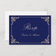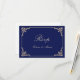 Vintage Nikah Islamic Muslim Wedding RSVP Card. An elegant navy blue rsvp response card that you can send to your family and friends to let them know when your Nikah ceremony will be. There is a gold scroll leaf design in the corner frame. Edit the name, date, location on the back card and you can change the couple's names on the front of the card. You can use this card for other ceremonies and Islamic occasions as well.