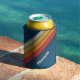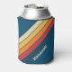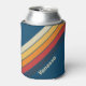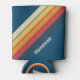 Vintage Blue Rainbow Striped with Name Can Cooler
