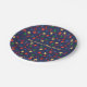 levate your holiday table with these stunning paper plates featuring a classic design of vintage Christmas ornaments and red beaded garland set against a rich, dark blue background. The deep blue offers a beautiful, luxurious contrast to the bright red, gold, green, and yellow baubles, creating a festive and elegant look for any event.