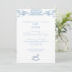 Vintage Blue Baby Shower Invitation. Blue Text. Baroque blue. White back. Rocking Horse.