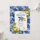 Vintage Blue Tile Yellow Lemon 70th Birthday Invitation