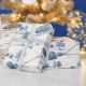A classic blue toile landscape wrapping paper featuring detailed pastoral scenes, elegant trees, and historic architecture. With its refined timeless French-inspired vintage charm, it also makes an ideal gift for crafters, designers, and anyone who loves traditional toile art.