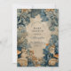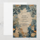 This baby shower design features a serene woodland scene with soft blue foliage, gentle bunnies, and an antique parchment center inspired by vintage storybook and botanical illustrations. Muted blue-green tones and delicate forest details create a calm, timeless aesthetic that feels both whimsical and refined.