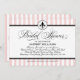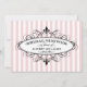 Vintage chic French themed wedding bridal shower invitations feature a black fleur de lis symbol, ornate flourishes, blush / ballet pink and white parlour stripes, and elegant custom script text that can be personalised for the bride-to-be and her magnifique Parisian event.