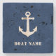 Nautical Vintage Boat Anchor With Your Custom Name or Boat Name on a Navy Blue Stone Coaster.