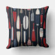 A nautical watercolor of vintage boat oars in navy blue, deep red and off-white for a coastal beach indoor, outdoor pillow in various sizes and shapes.