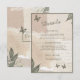 This wedding enclosure card comes in different sizes, shapes and papers. It is customisable with your reception, accomodation, details, monograms. It shows a harmonious blend of a sage green eucalypthus greenery, butterflies, and torn paper with transparent vintage script. Earthy brown and beige tones set the tone for a boho chic celebration and makes this design complete. Hobinishop