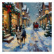Vintage Border Collie Snowy Village Christmas Poster