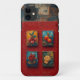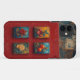 This mobile case features a stunning vintage botanical design with four vibrant panels, each showcasing hand-painted flowers and fruits on a textured red background. The artistic composition blends classic charm with bold colour, making it a perfect accessory for lovers of nature-inspired and retro styles.