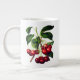 Giant Mug in a print of cherries and leaves adapted from vintage botanical prints - Deep red cherries and green leaves