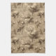 Vintage botanical floral pattern kitchen towel featuring soft cream and beige flowers with detailed stems, leaves, and delicate script accents on an aged neutral background. Elegant and timeless with a rustic floral aesthetic, this seamless design is ideal for cottagecore lovers, garden enthusiasts, vintage style fans, and botanical art admirers.