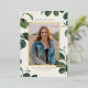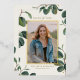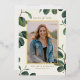 Invite family and friends to your graduation party with this customisable botanical graduation invitation. It features watercolor leaves on beige background. Personalise this photo graduation invitation by adding a photo, name, school and other details. This gold foil graduation invitation is available on other cardstock.