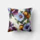 Add a touch of timeless charm to your living space with this exquisite botanical throw pillow. Featuring a lush, floral style arrangement, this design showcases a stunning bouquet of deep purple pansies, soft azure blue blossoms, and warm amber accents.