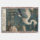 vintage painting of a botanical scene with a blue crane surrounded by white lotus flowers