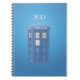 Vector drawing of a blue vintage British police callbox notebook. Callbox image and background are customisable and can be reduced or enlarge. Add your own text, text colour and font. Keep the blue gradient background or remove to add your own colour.