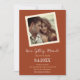 Retro brown and cream colored old-fashioned photo template wedding invitation with a boho vintage vibe. On the back you can add your own scanner code and RSVP info.
