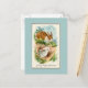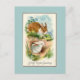 Two adorable bunnies are playing hide and seek outside. One bunny is brown and white and the other one is plain white. Message: Loving Easter Greetings. Image of a Vintage Easter Postcard on a custom light cyan blue background.