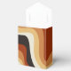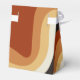 This groovy retro wedding favour box features wavy lines in tan, brown, and orange, reminiscent of the 70s and hippie lifestyle. Bold vintage reception party favour box with funky white script of the couple's name next to the abstract curvy lines. Groove along with this fun earth tone design.