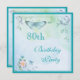Chic, vintage elegant personalised / personalised custom 80th birthday party celebration invitations for women and girls. On the front of these glamourous birthday party invites is a beautiful image of a turquoise / green butterfly, elegant swirls and green, pink and blue flowers, printed on a turquoise / green coloured background. This invitation for female birthday parties has a soft vintage look. These stunning, romantic, shabby chic, old fashioned, colourful, birthday party invites are perfect for Spring, Summer, Autumn or Winter time events. This feminine, girly design is also on the reverse of this invite with enough space to personalise/personalise your event details. Classy, cute, contemporary invitations in trendy, fashionable colours / colours with a pretty, old fashioned look. These glamourous, elegant, stylish, sophisticated, girlie invites are decorated / printed on both sides. Perfect invitations for birthday parties. All text is fully customisable to meet your requirements, if you need any assistance in customising your product please contact me through my store and i will be very happy to help you.