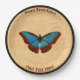 A vintage illustration, circa 1750, of a red and blue South American butterfly. There are two places to add your own text.