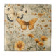 Elegant seamless pattern ceramic tile featuring delicate butterflies, golden orange wildflowers, and soft botanical details on a muted neutral background. Inspired by vintage nature illustrations, this dreamy design blends warm earthy tones with whimsical garden charm. Ideal for butterfly lovers, cottagecore fans, nature enthusiasts, and those who love soft floral aesthetics.